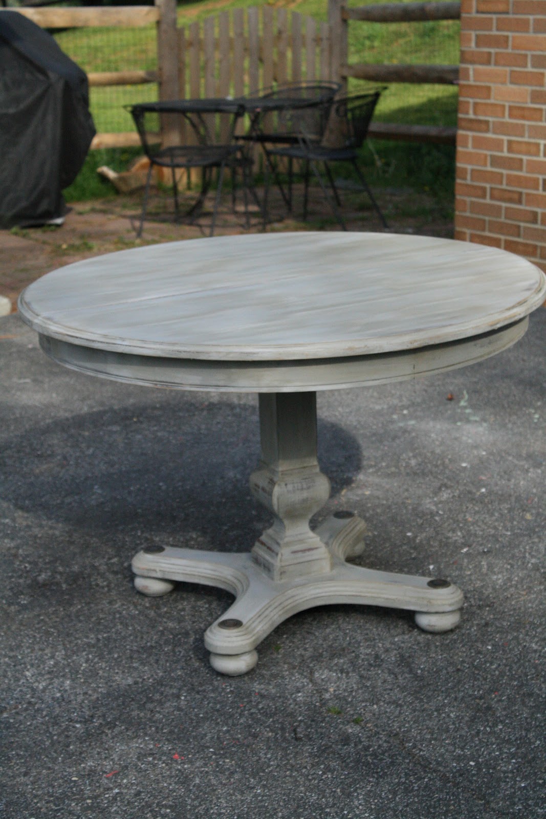 Another favorite is this round table that I found at Goodwill. Â I adored its shape and went with a restoration hardware inspired look.